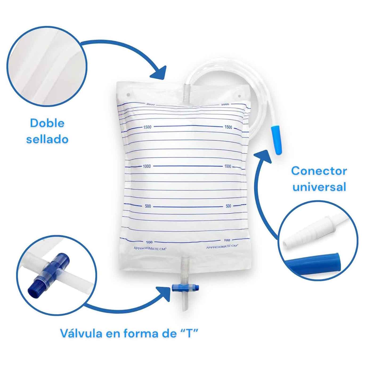 -Válvula antirretorno: Previene el reflujo de orina, garantizando la higiene y evitando la contaminación.