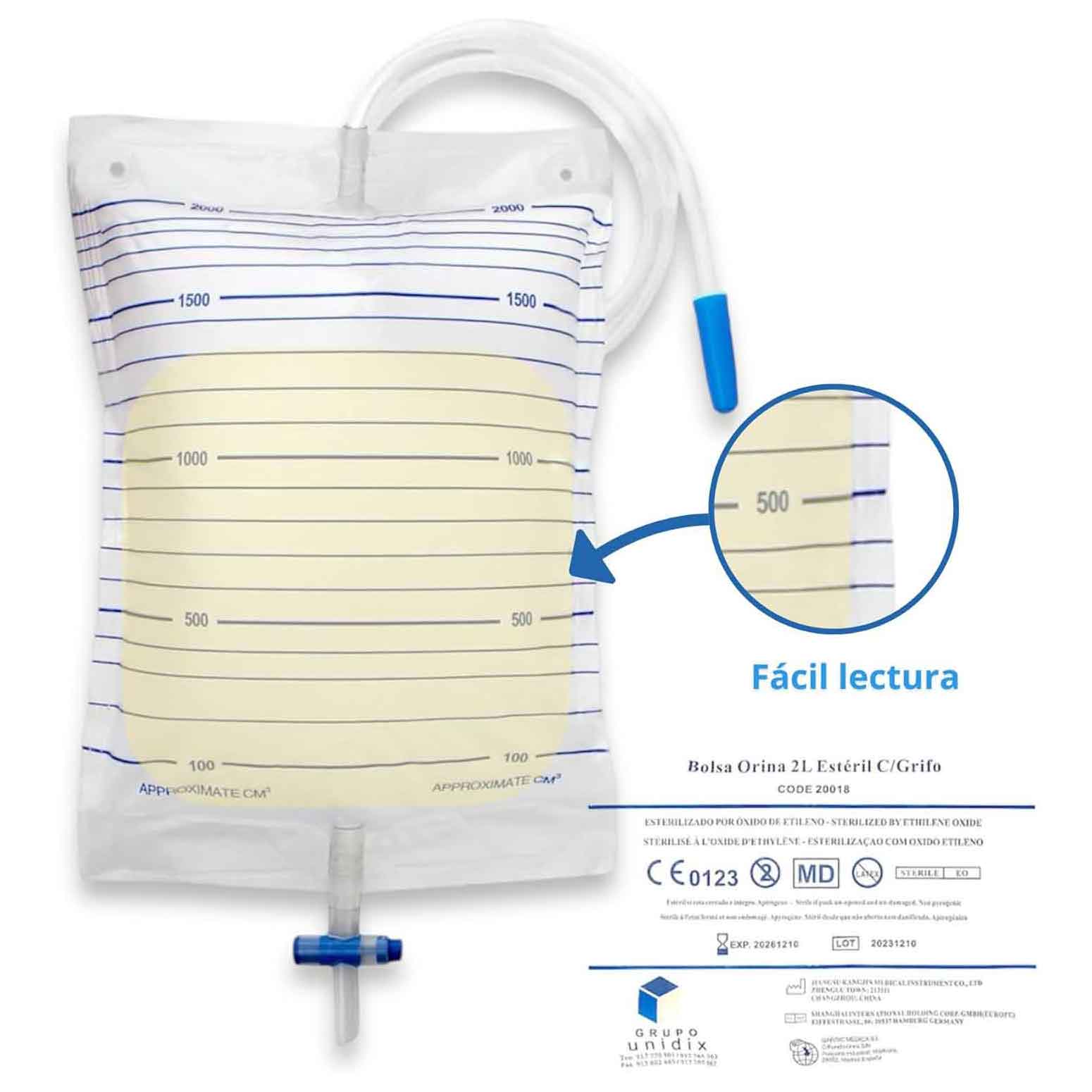 Unidix – Bolsa de orina estériles 2L tubo de 90cm (30 uds)