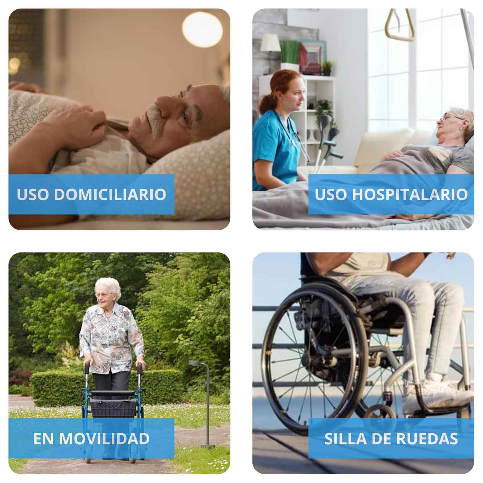 -Ojales de sujeción. Permite una fijación cómoda y segura a la cama o silla.